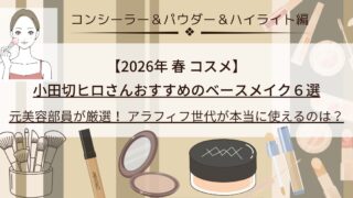 小田切ヒロさんの2026春ベースメイクから、コンシーラー・パウダー・ハイライトを厳選紹介。アラフィフ向けに毛穴カバー・崩れ防止・ツヤ出しの仕上げテクとおすすめ6選を元美容部員目線で解説します。