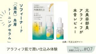 アラフィフ美容 乾燥によるくすみ対策に。ソフィーナiP「スキントーニングセラム」10日間体験レビュー【52歳の肌で検証】 小田切ヒロさんが選ぶ2025年下半期ベストコスメ入り。ソフィーナiP「スキントーニングセラム」を10日間使い切り、乾燥によるくすみへの手応えや使用感を52歳・元美容部員が正直にレビューします。 2025.12.14 お試しセット・付録・サンプルレビューアラフィフ美容